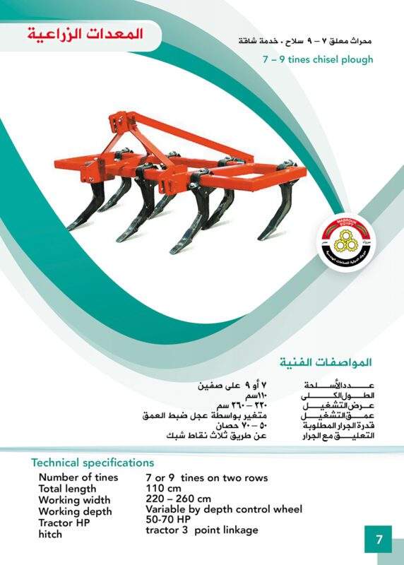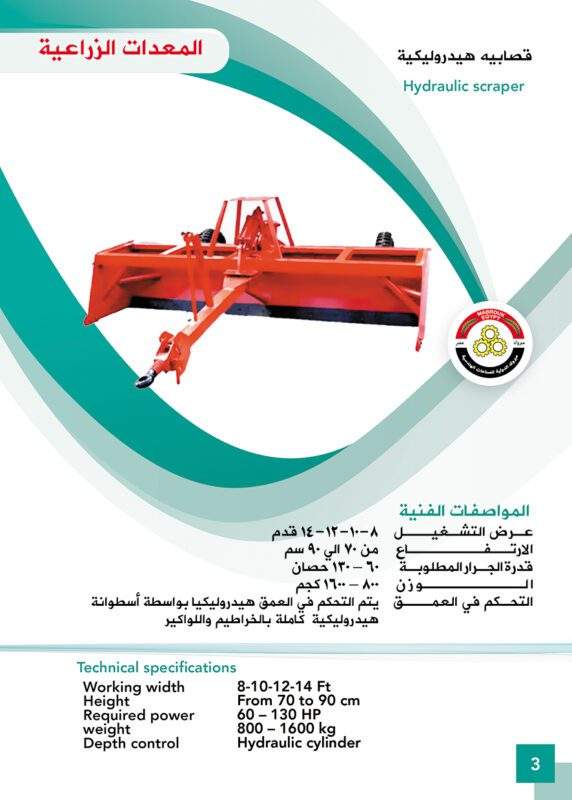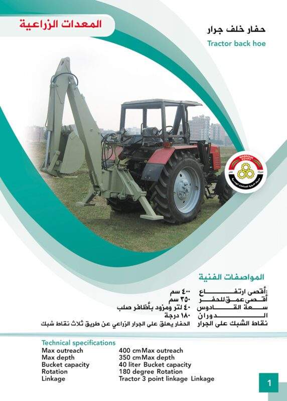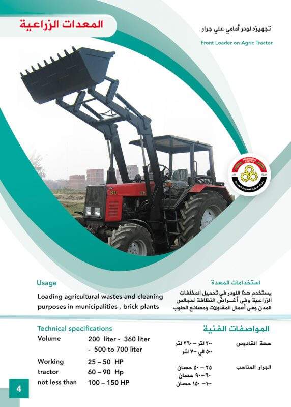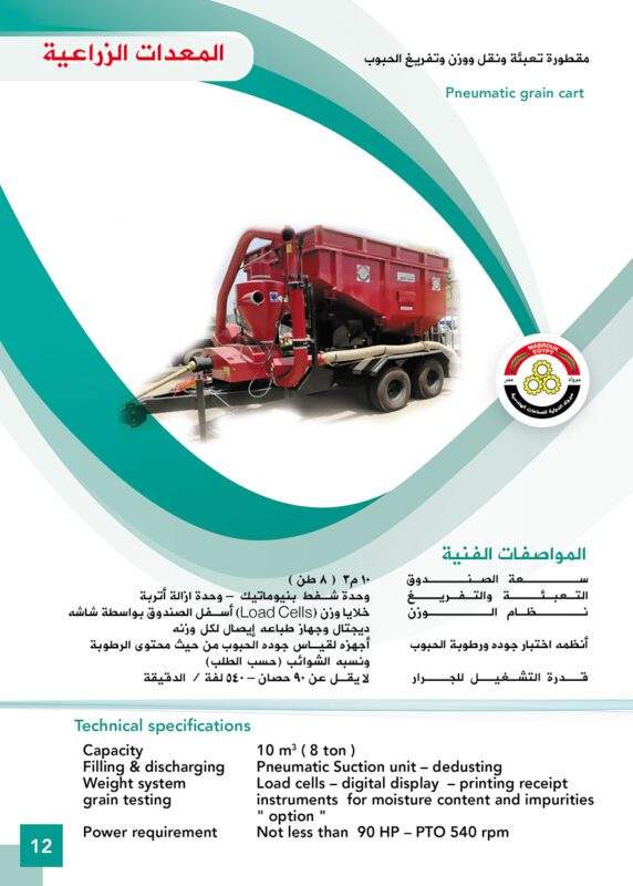 (المقطورات - عبوات الحبوب الهوائية ، صناديق النقل والوزن والتفريغ - خزانات المياه والصرف الصحي - ماكينات تمزيق النفايات الزراعية - لوادر أمامية على الجرارات - ماكينات تسوية الأرض ، كاشطات ، رافعات ، حفارات - دراسات)