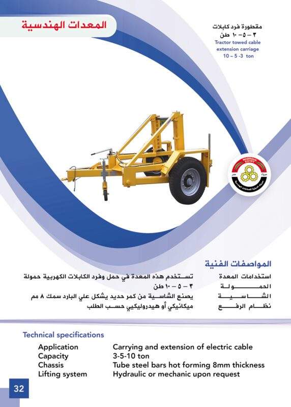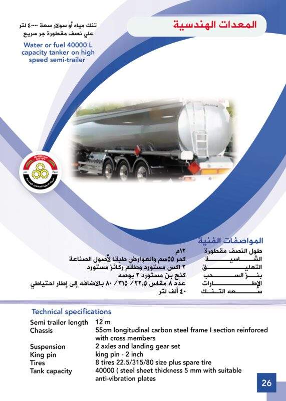 (نصف مقطورات عالية السرعة (صندوق قلب ثابت السطح - صهريج - شاحنة صغيرة) - منصات هيدروليكية - كرفانات - قطار ترفيهي (تفتاف) - صناديق حمل وتمديد الكابلات - صناديق خدمة أرضية بالمطار)
